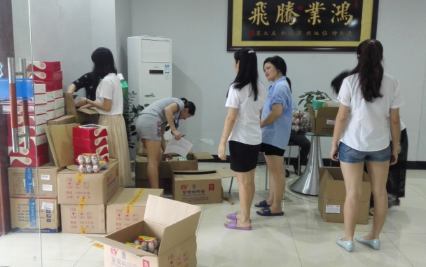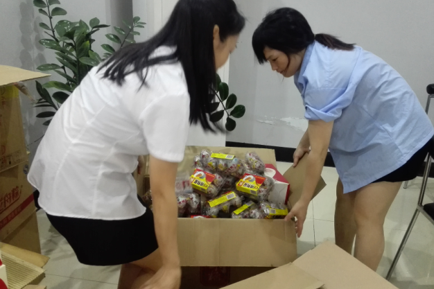 负责领取的前台小周清点、签名忙的不亦乐乎,这不,财务部的美女们热心帮忙分发啦!