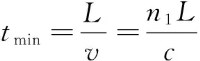 对于阶跃折射率分布光纤,其最大模式(接近临界角θc的光线)传输L距离所需时间为