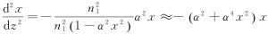 将自聚焦光纤内的傍轴光线再分成近轴光线和远轴光线。所谓近轴光线就是摆动的光线离轴线不远,即α2x2?1,可以有近似则式可以近似成