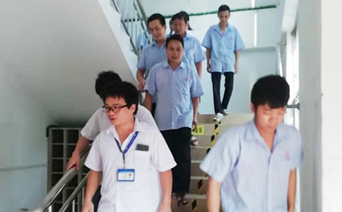 下午四点,疏散逃生演练正式开始,各部门的员工按照各车间负责人指示从安全通道及时有序撤离,及时到达紧急集合处,篮球场。