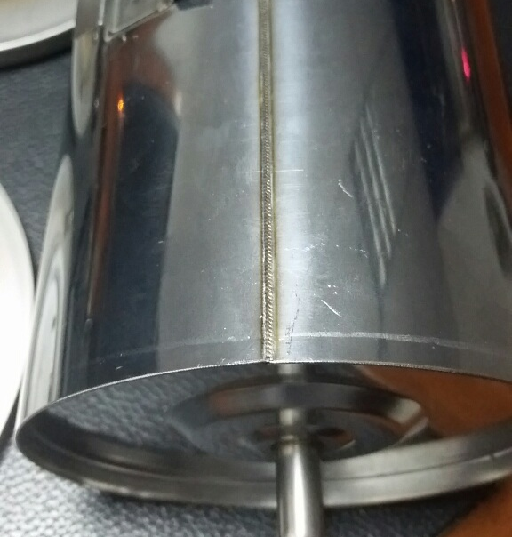 一个不锈钢水桶内胆,多处采用了激光焊接技术。