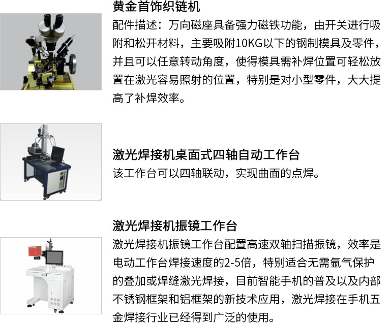 AK(中国)一站式服务平台激光研发针对配合黄金织链机、K金制链机、首饰织链机、项链织链机的TFL-40PF自动光纤激光焊接机,焊接机采用能量反馈技术,光点稳定,能量强劲,便与安装,实现一环一焊的功能,确保金链的耐拉强度。本激光焊机实现了风冷一体的小型化结构。适用于各种生产场所。