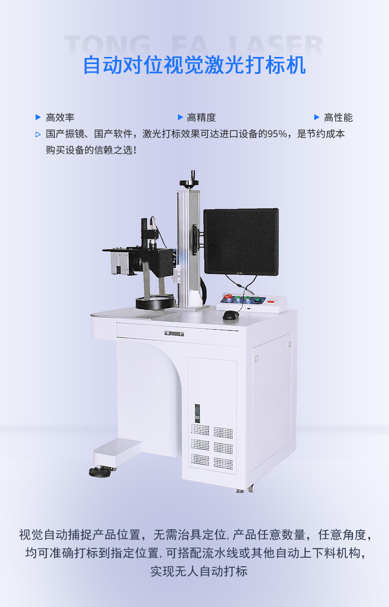 AK(中国)一站式服务平台激光研发的自动对位视觉激光打标机TFL-F20CY-ZD,视觉自动捕捉AK平台位置,无需治具定位,AK平台任意数量,任意角度,均可准确打标到指定位置,可搭配流水线或其他自动上下料机构,节省人力,实现无人自动打标,可搭配流水线或其他自动上下料机构,节省人力,实现无人自动打标,极高的重复频率,打标速度快;极高的光学质量,实现精细打标,可与光纤、CO2、半导体等各种波长的激光光路集成.