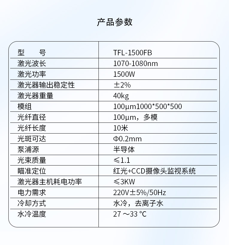 激光器主机耗电功率 |