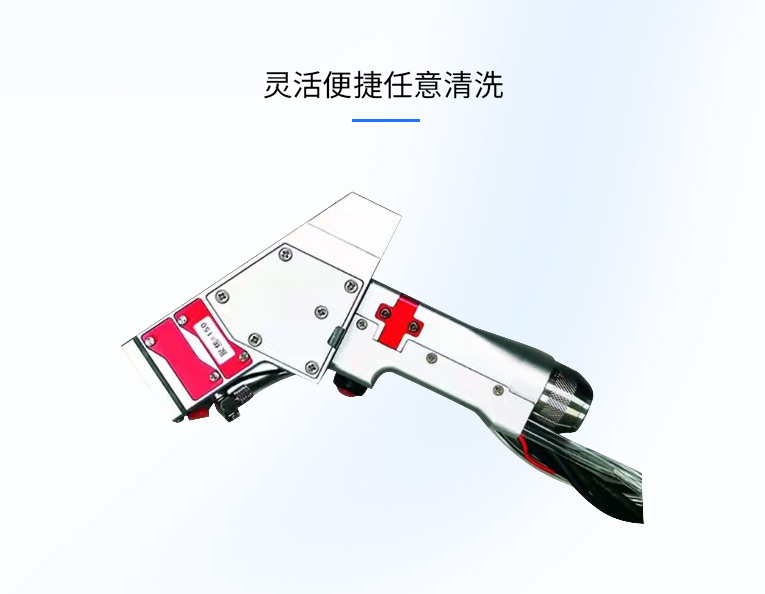 清洗机手持激光头外观简洁、小巧轻便,可以长时间手持使用,按键与手柄一体化设计,简单易用。内置扫描系统采用小型高速电机及驱动 ,主体为一体化加工成型,坚固防尘且稳定耐用。激光头采用了创新的红光辅助寻焦设计,可利用红光指示轻松找到不同场 镜下的对焦位置,解决了市场上现有AK平台对焦不准确以及调节方式单一的问题。