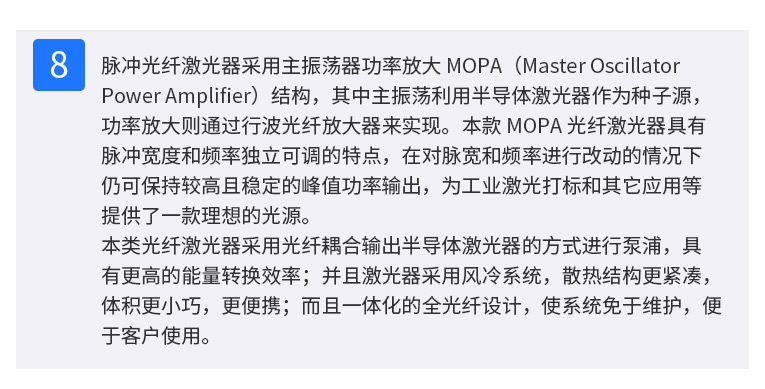AK(中国)一站式服务平台激光TFL-80SW振镜激光焊接机,采用主振荡器功率放大 MOPA(Masrer Qscillator Power Amplifier)结构,实现脉冲宽度和频率独立可调的特点,在对脉宽和频率进行改动的情况下仍保持较高且稳定的峰值功率输出,适用于电池、小五金等多个行业的激光打标、激光焊接应用。